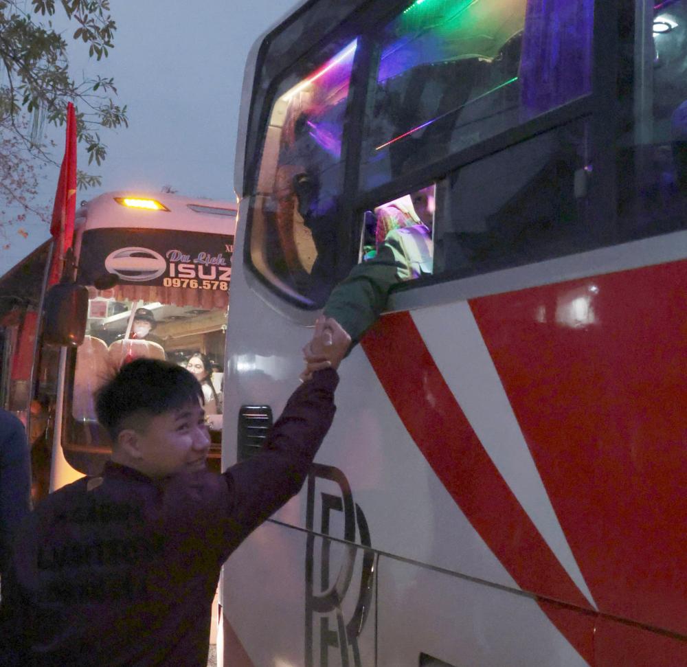 Những chuyến xe lăn bánh đưa tân binh rời quê hương, bắt đầu hành trình rèn luyện và cống hiến trong màu áo lính.